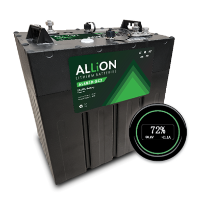 Stay powered round after round with the high performing AL4830-GC2 lithium (LiFePO4) battery. This 48V Lithium Iron Phosphate (LiFePO4) battery has a capacity of 30 Amp Hours (Ah) and is a lightweight, high cycle replacement for golf carts, commercial turf equipment and floor scrubbers. The ALLiON GC2 has been custom designed and tested by the R&J Batteries technical team to provide long lasting and reliable power. The safe and reliable Integrated Battery Management System (BMS) is a key feature that sets this battery apart and even small details like a dust cap over the power switch has been accounted for.